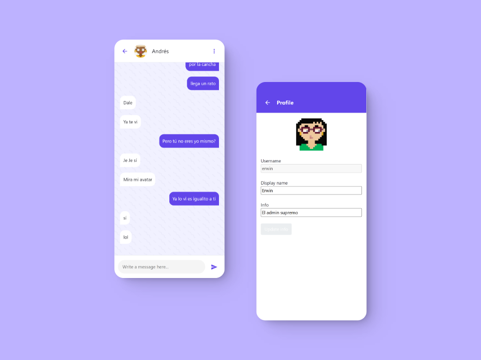 En el front-end estoy considerando una mejor estrategia para renderizar la lista de usuarios ya que ahora mismo podría ralentizarse muy fácilmente con una lista de usuarios larga. Lo mismo con la cantidad de mensajes en la ventana de chat.